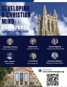 Are you a graduate student of faculty member looking to connect with other local Christians in the academy? Or perhaps you are interested in learning about what it means to be a Christian, or more particularly, what it means to be a follower of Jesus Christ in the academy? Are there important intersections between my Christian faith and my research? If you are asking these types of questions, you might appreciate attending our Developing a Christian Mind Conference, January 23-24 on Duke’s East Campus.
